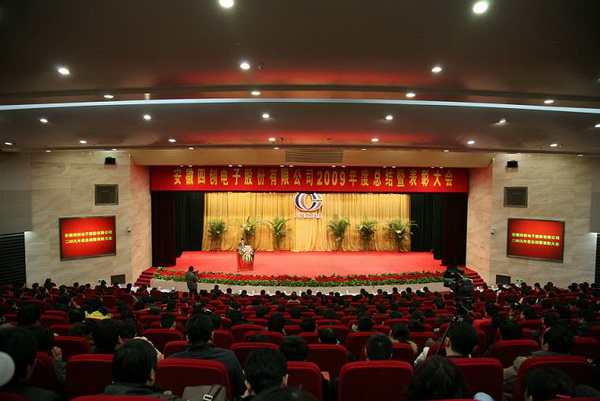 2010年元月11日下午,合肥市政府禮堂外彩旗飛揚、禮堂內鮮花綻放,500多名四創(chuàng)員工歡